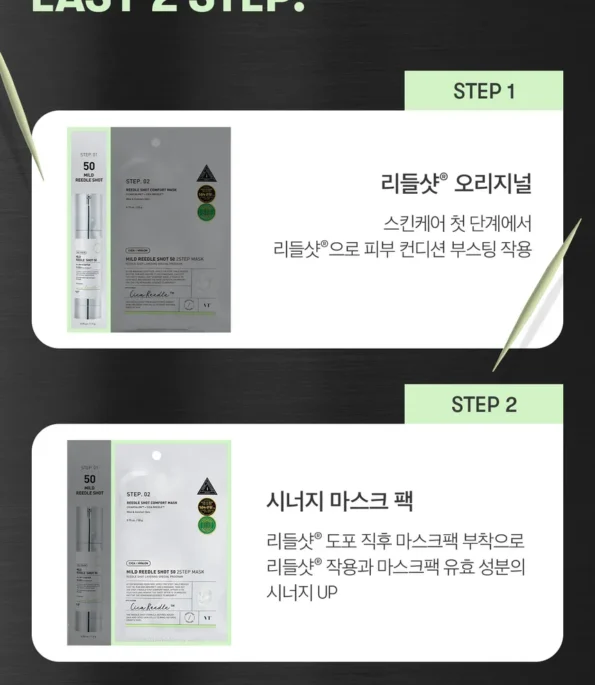 - Step 1: Reedle Shot 50 improves absorption of skin care active ingredients and minimizes enlarged pores.