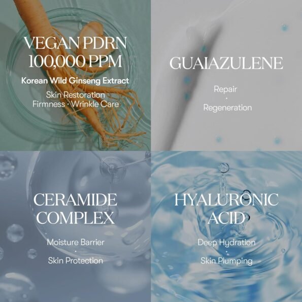 - [VEGAN 100,000 PPM PDRN] Our vegan PDRN is derived from Korean wild ginseng, a potent, plant-based alternative to traditional fish-derived PDRN. With lower molecular weight and enhanced stability, it delivers maximum efficacy for your skin.