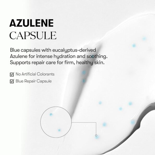 - [BLUE AZULENE CAPSULE] The blue capsule contains azulene extracted from eucalyptus, delivering exceptional hydration and soothing effects. It provides repair care to strengthen the skin’s condition.