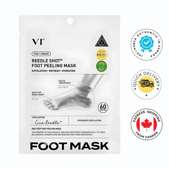 - The VT Cosmetics Reedle Shot Foot Peeling Mask is designed to deeply exfoliate and rejuvenate tired, rough feet.