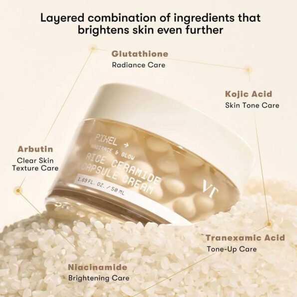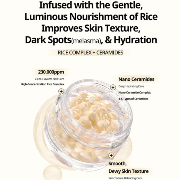 - This rice capsule cream helps improve skin texture for clear and dewy skin.