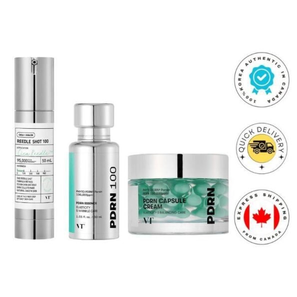 Experience next-level skin rejuvenation with the VT COSMETICS Shining Holiday Set 3Pcs, a limited-edition gift bundle combining VT’s most advanced anti-aging treatments. This set includes Reedle Shot 100, PDRN Essence 100, and PDRN Capsule Cream 100, creating a full routine designed to boost elasticity, smooth fine lines, improve texture, and deeply hydrate the skin.