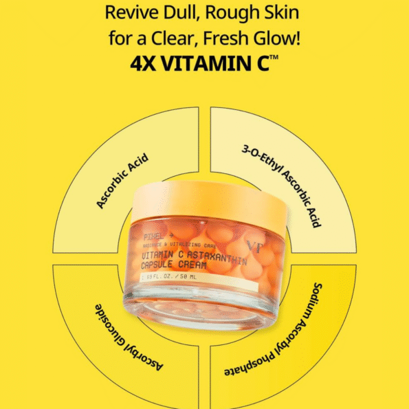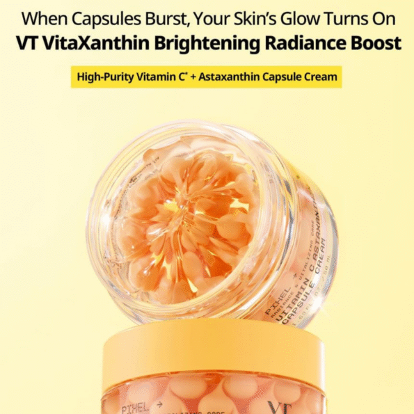 VT Vitamin C Astaxanthin Capsule Cream combines the rejuvenating properties of Vitamin C with the powerful antioxidant effects of Astaxanthin to brighten and protect the skin.