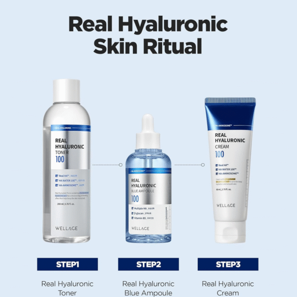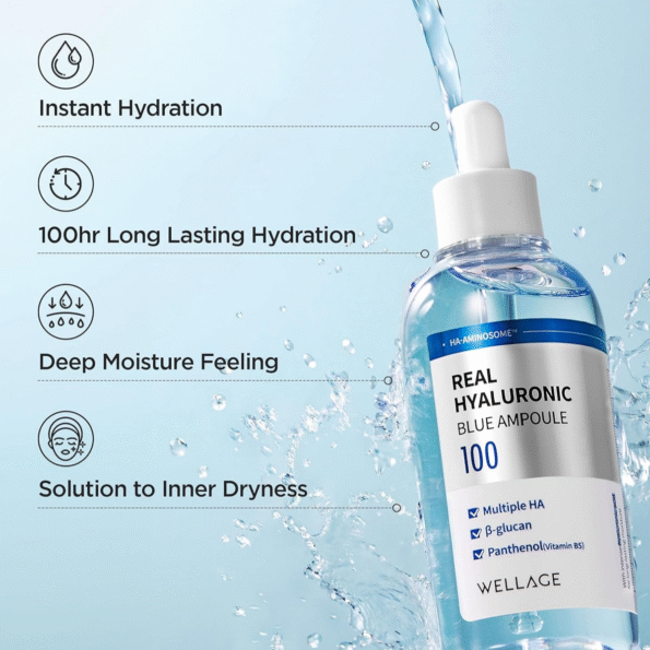- PURE HYALURONIC FORMULA: Experience the purest form of hydration with WELLAGE’s Real Hyaluronic Blue Ampoule. Packed with 100% pure hyaluronic acid identical to that found in the human body.